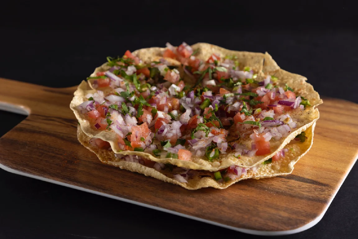 350 grams of crispy fritters made with a mix of vegetables like onions, potatoes, and spinach, coated in a spiced chickpea flour batter and deep-fried.